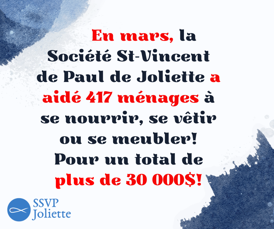 La Société St-Vincent de Paul de Joliette est un organisme de bienfaisance catholique laïc. Grâce au dévouement de ses employés, de ses bénévoles et de ses bienfaiteurs, la Société St-Vincent de Paul aide les gens les plus vulnérables à préserver leur dignité et leur autonomie et à s’intégrer dans la collectivité.